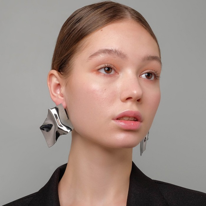 Серьги металл «Атмосфера» ромб мятый, цвет серый — Характеристики