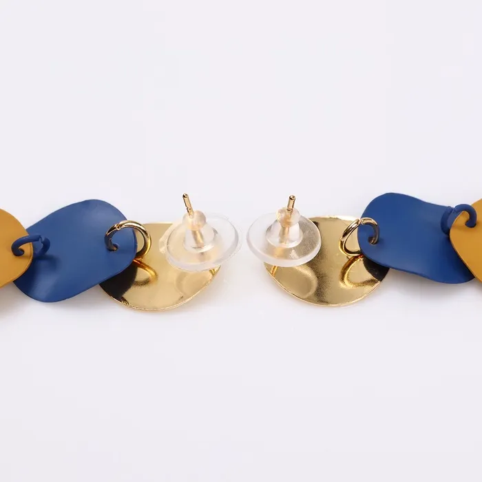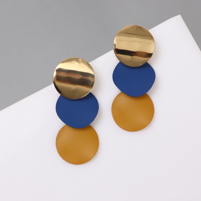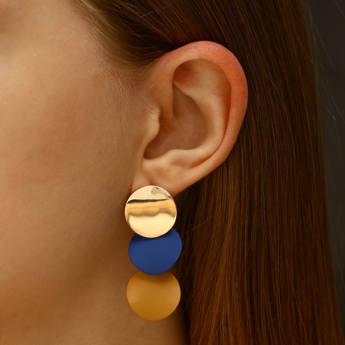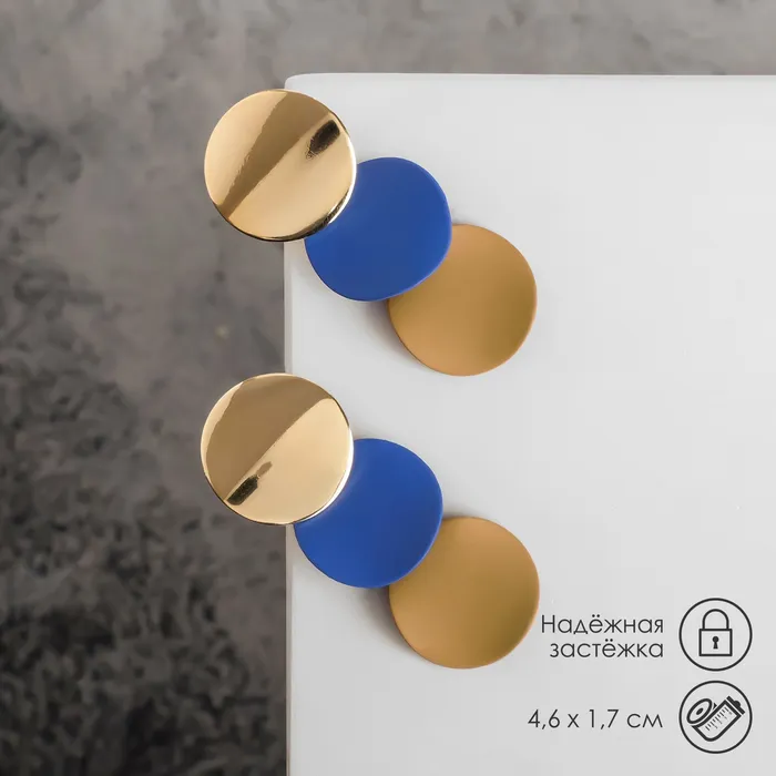 Серьги металл «Азелия» выгнутые круги, цвет бежево-синий в золоте — Характеристики