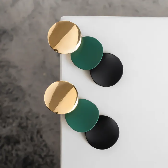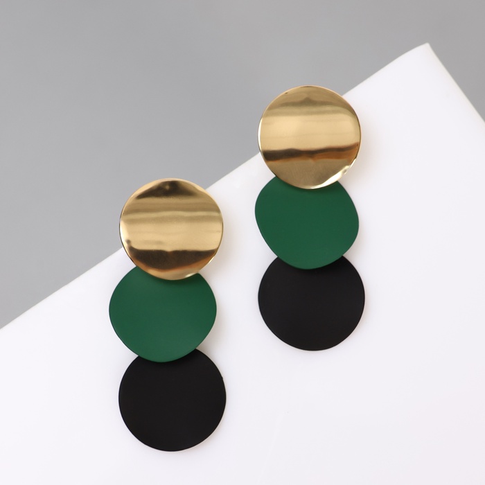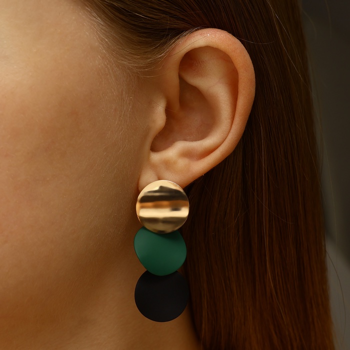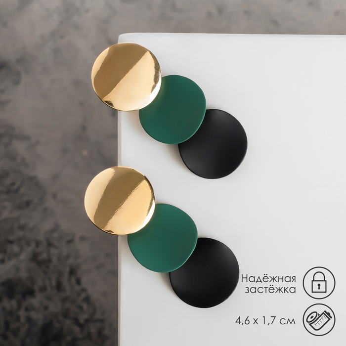 Серьги металл «Азелия» выгнутые круги, цвет чёрно-зелёный в золоте — Характеристики