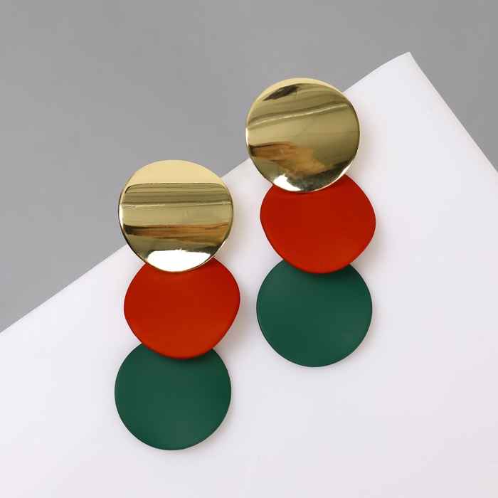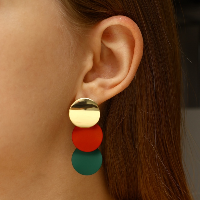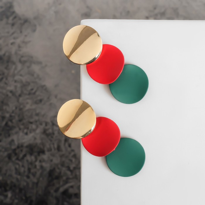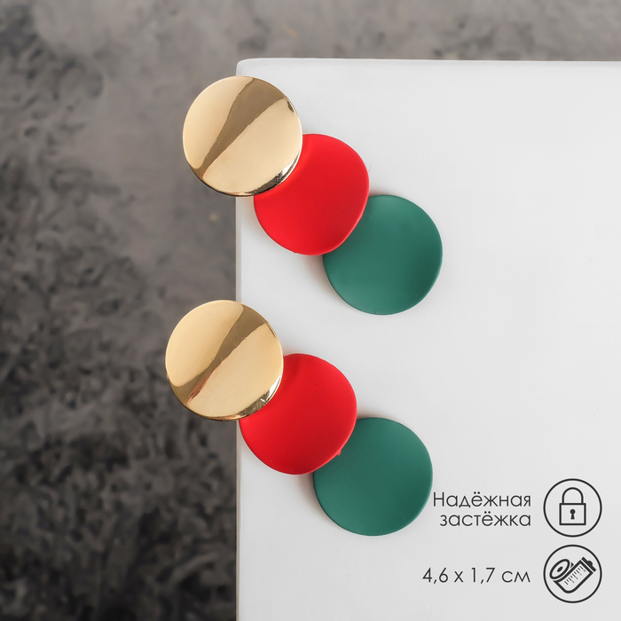 Серьги металл «Азелия» выгнутые круги, цвет красно-зелёный в золоте — Характеристики
