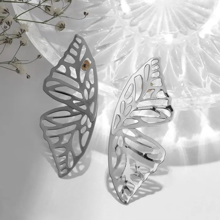 Серьги металл «Бабочки», цвет серебро — Характеристики