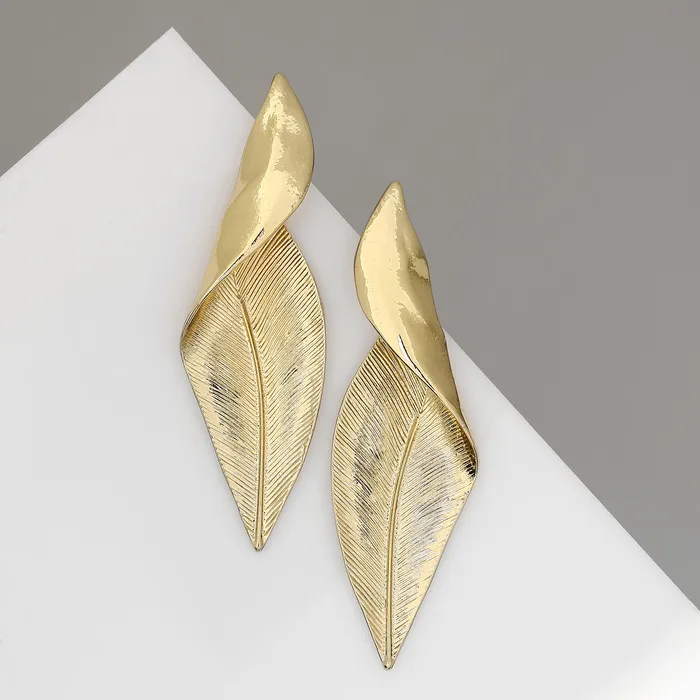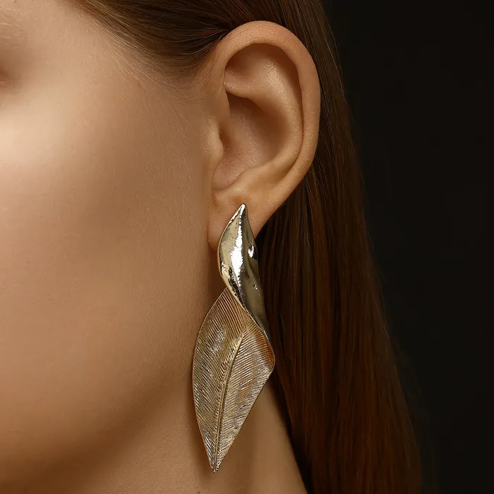 Изящные серьги с изогнутым листком в золотом цвете подчёркивают природную лёгкость и женственность образа. Их длина 7,3 см создаёт выразительный акцент, который остаётся при этом лёгким и ненавязчивым. Этот аксессуар гармонично впишется в повседневный гардероб и дополнит вечерний наряд.