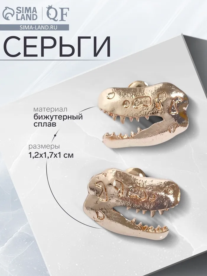 Серьги металл «Динозавры» скелет, цвет золото — Характеристики