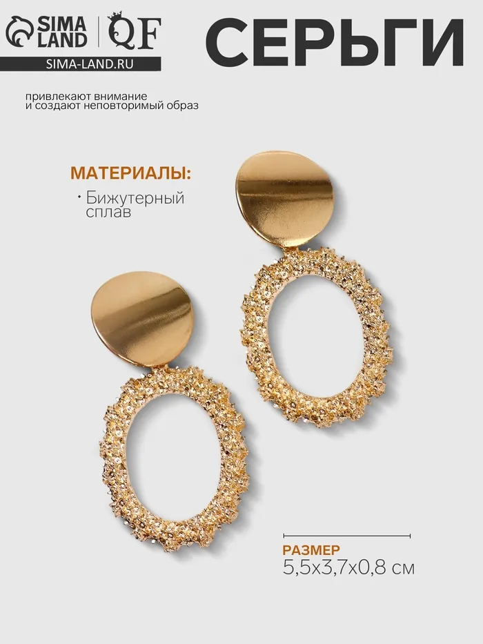 Серьги металл «Эврика» овальные, цвет золото — Характеристики