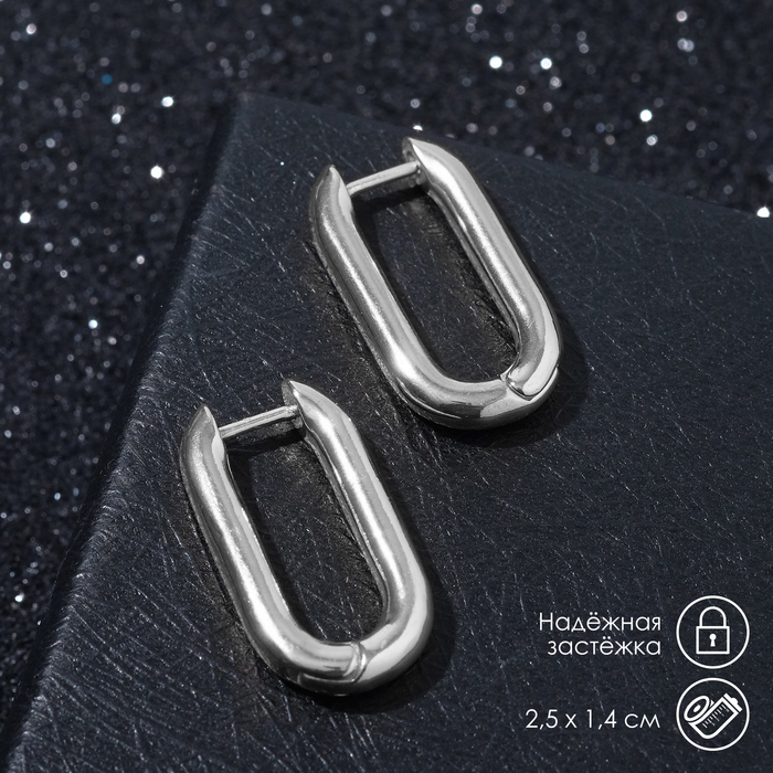Серьги металл «Геометрия» объёмный овал, цвет серебро — Характеристики