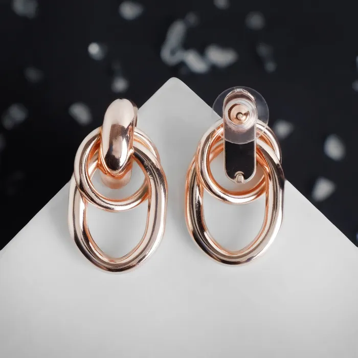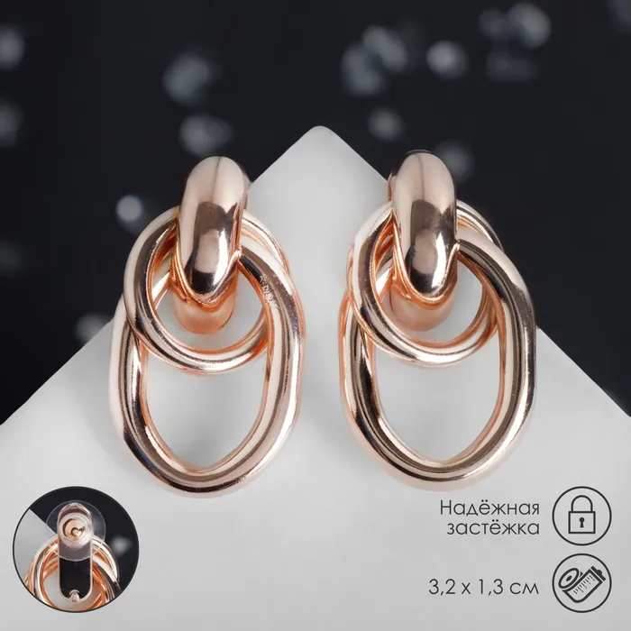 Серьги металл «Геометрия» овалы на кольце, цвет розовое золото — Характеристики