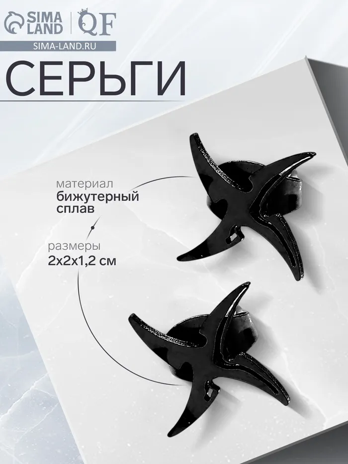 Серьги металл «Япония» сюрикены гвоздики, цвет чёрный — Характеристики