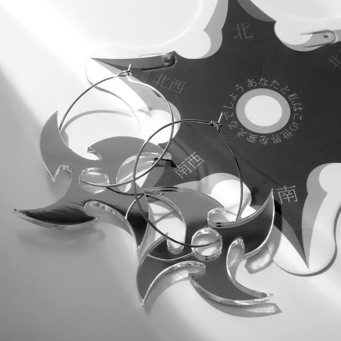 Серьги металл «Япония» сюрикены на кольце, цвет серебро — Характеристики