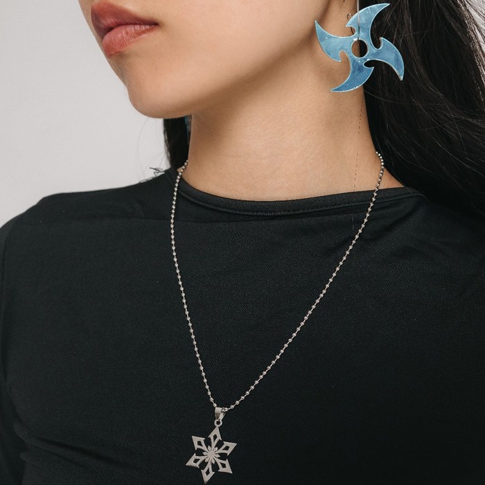 Погрузитесь в атмосферу японской эстетики с уникальными серьгами в форме сюрикенов на кольце, выполненными из серебристого металла. Эти серьги длиной 5,5 см придадут вашему образу смелый и оригинальный вид, идеально подходя для женщин, которые ценят стиль и индивидуальность.