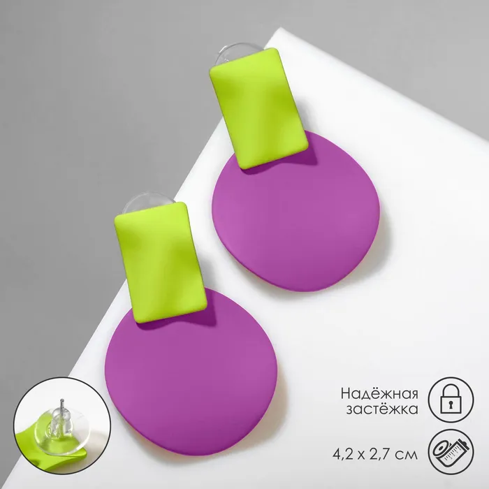 Серьги металл «Яркость» геометрия, цвет салатово-фиолетовый — Характеристики