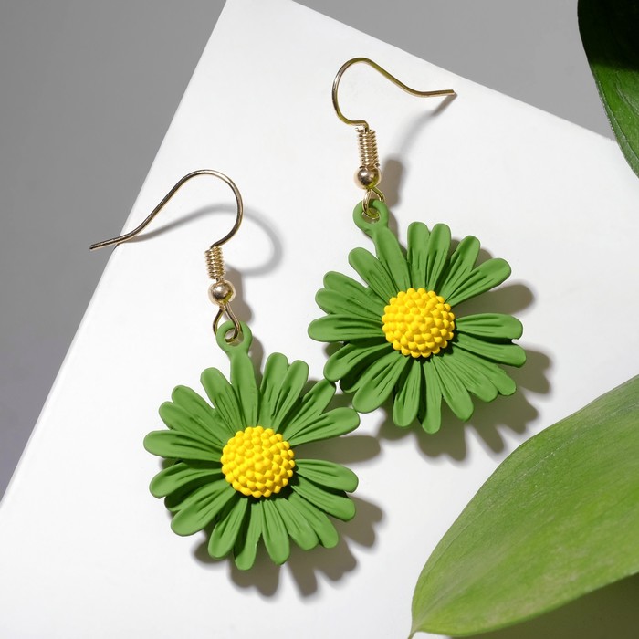 Серьги металл «Яркость» ромашки, цвет жёлто-зелёный — Характеристики