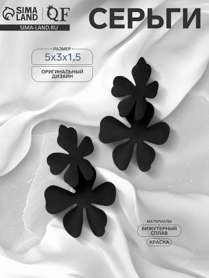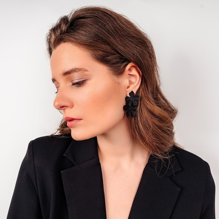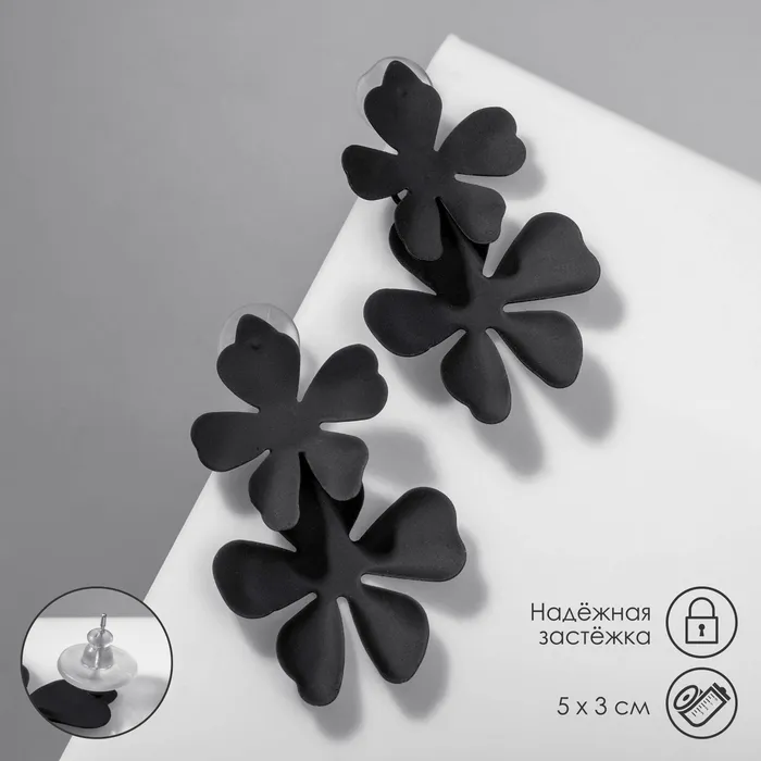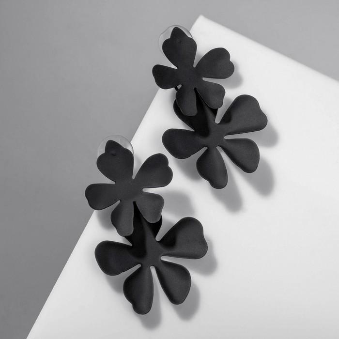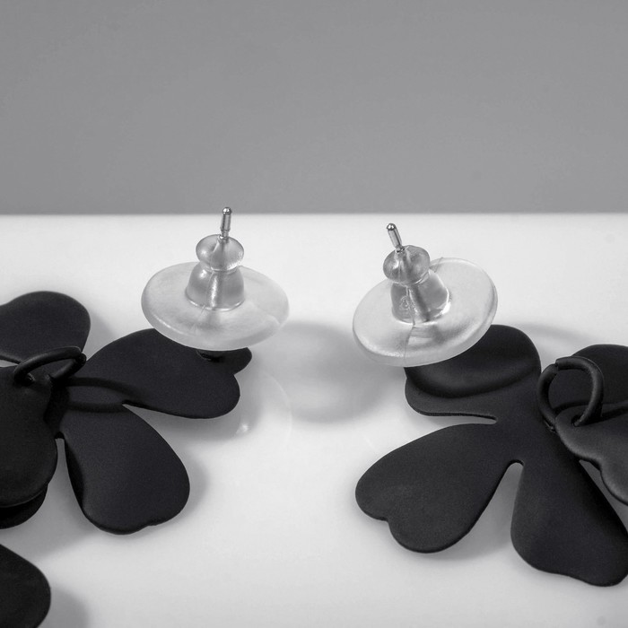Серьги металл «Яркость» цветы, цвет чёрный — Характеристики