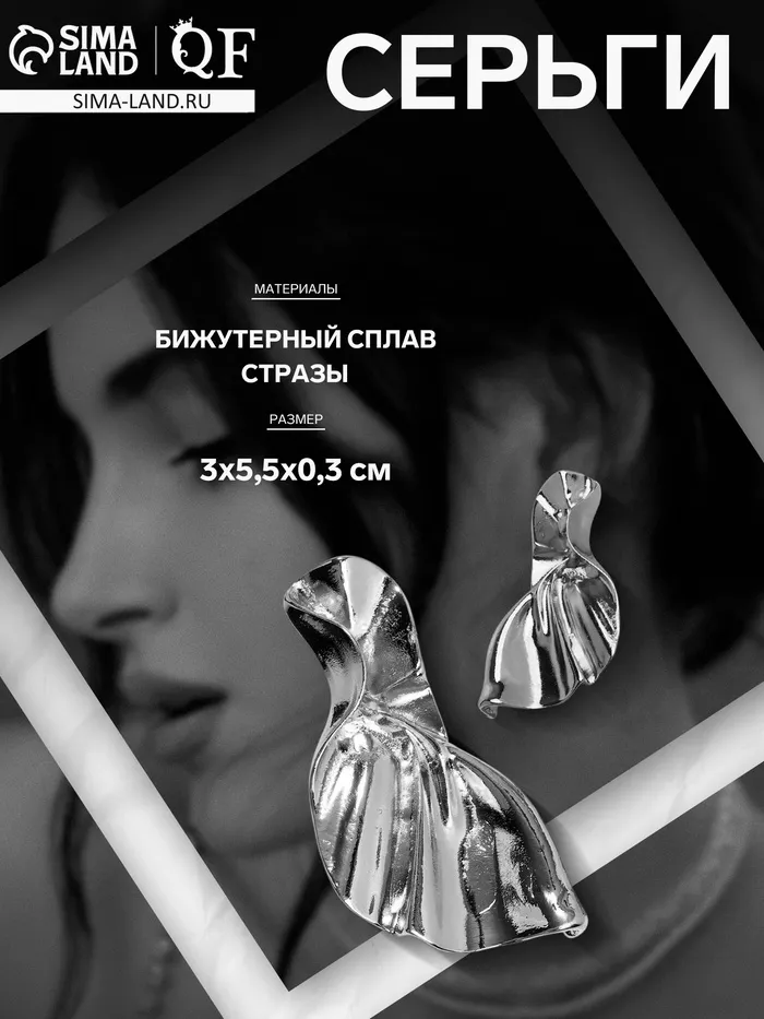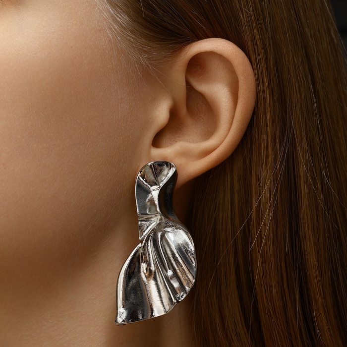 Серьги металл «Изгиб» волна крупная, цвет серебро — Характеристики