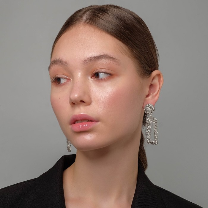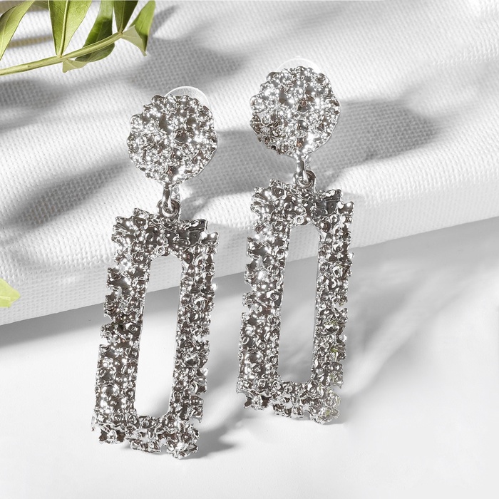 Серебристые прямоугольные серьги из металла с застёжкой-пусет станут лаконичным дополнением образа современной женщины. Их длина в 6 см придаёт украшению выразительность, сохраняя при этом сдержанность и универсальность для разных случаев — от повседневных выходов до праздничных мероприятий.