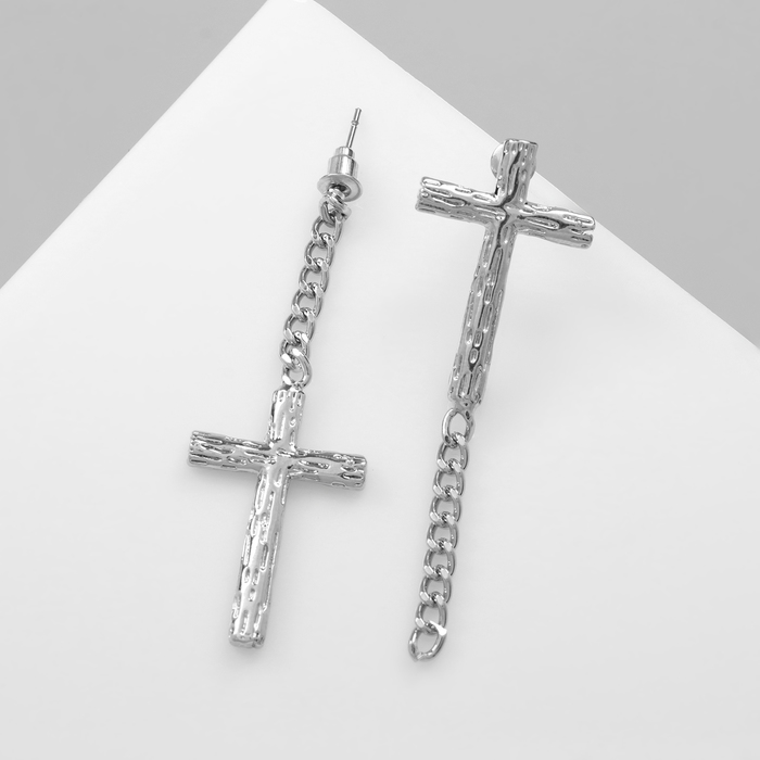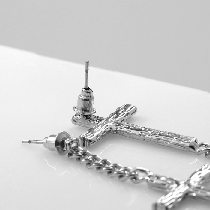 Серьги металл «Крест и цепочка» плетение, цвет серебро — Характеристики