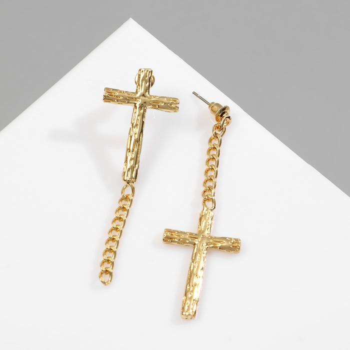 Серьги металл «Крест и цепочка» плетение, цвет золото — Характеристики