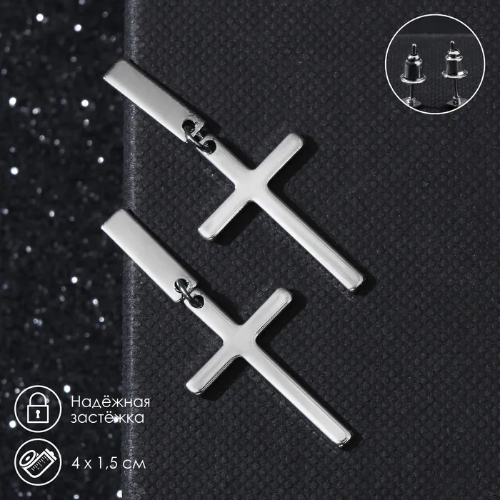 Серьги металл «Крестики» маленькие, цвет серебро — Характеристики