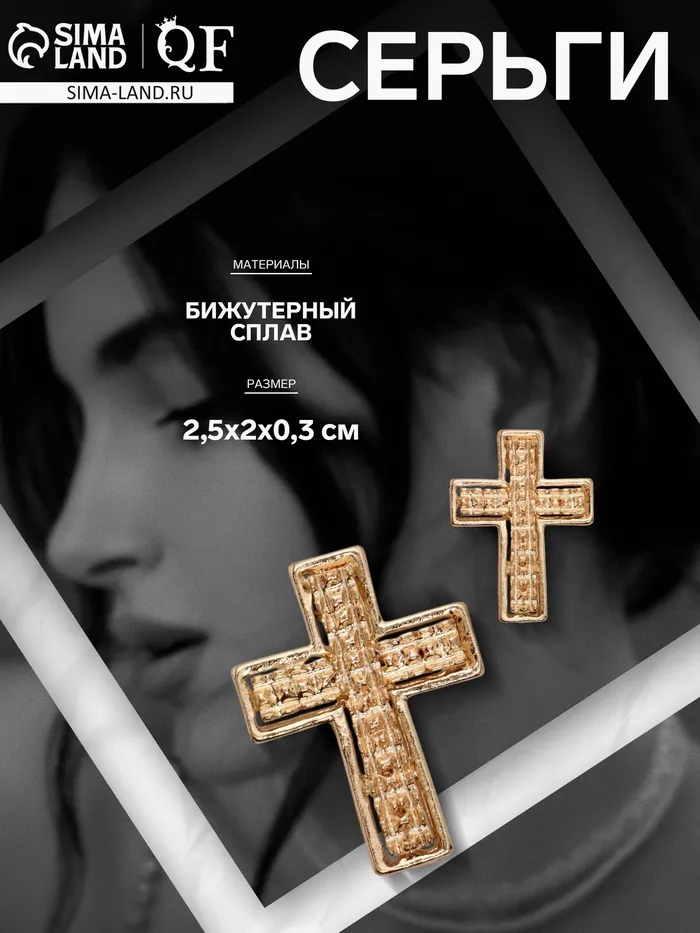 Серьги металл «Крестики» рельеф, цвет золото — Характеристики