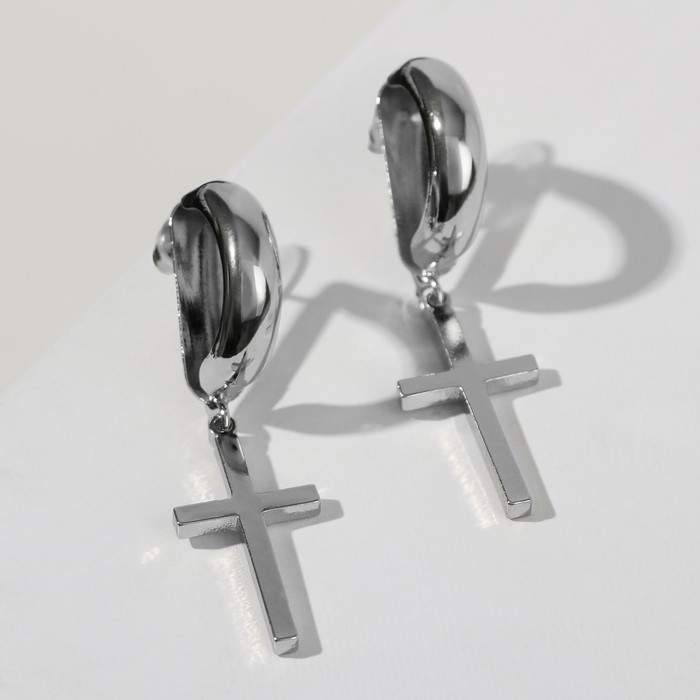 Серьги металл «Кресты» объёмная линия, цвет серебро — Характеристики