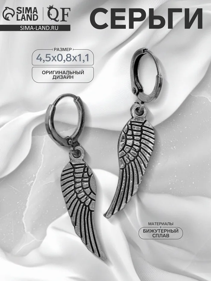 Серьги металл «Крылья» соло, цвет чернёное серебро — Характеристики