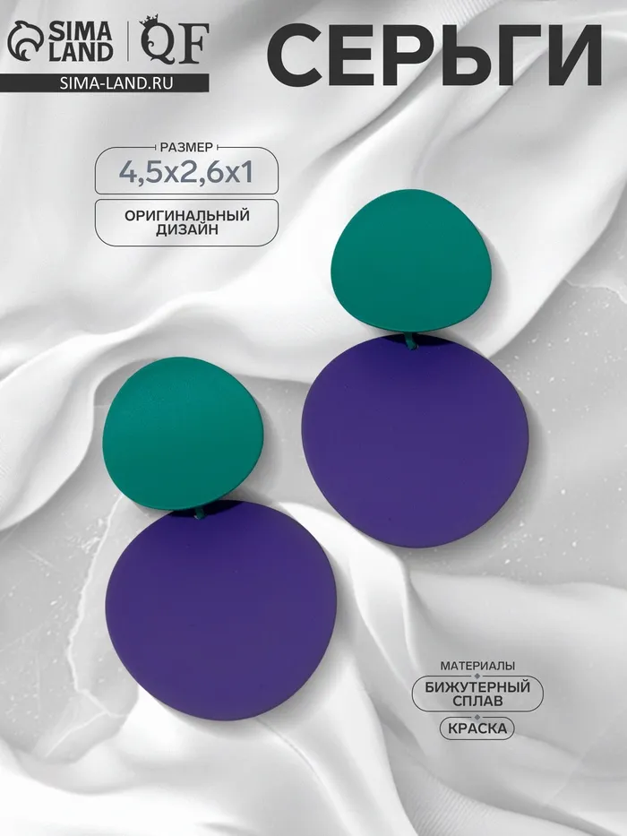 Серьги металл «Леди» круги, дуо, цвет фиолетово-мятный — Характеристики