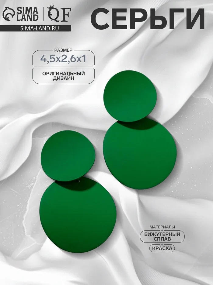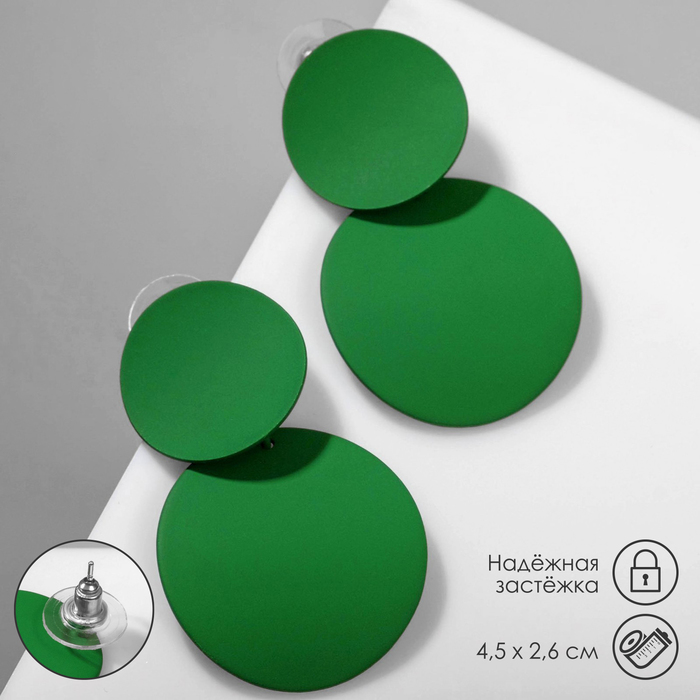 Серьги металл «Леди» круги, дуо, цвет тёмно-зелёный — Характеристики