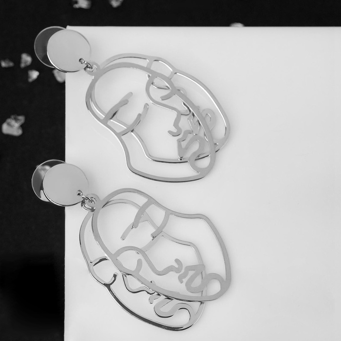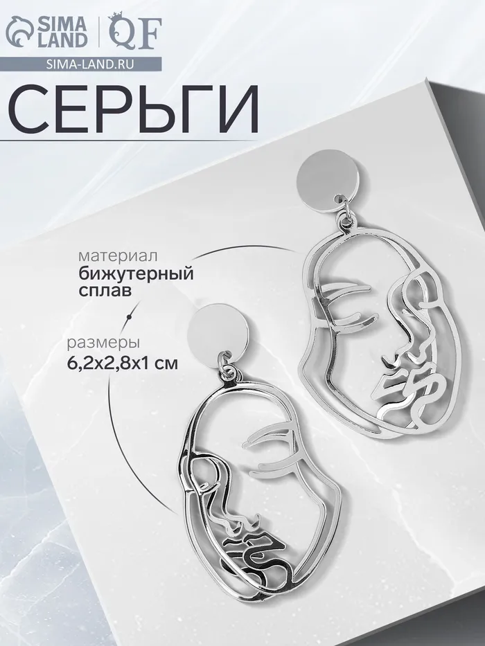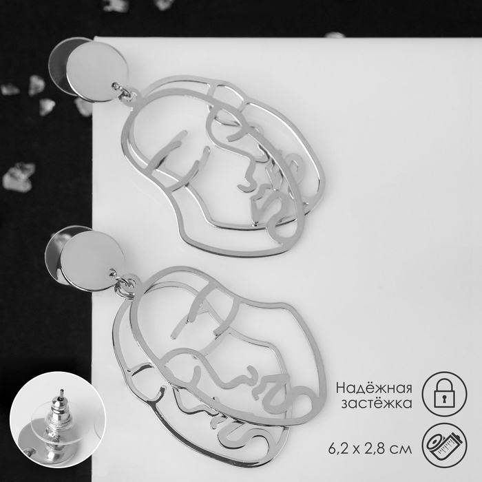 Серьги металл «Лица» раздвоение, цвет серебряный — Характеристики