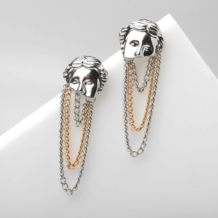 Серьги металл «Лица» цепи, цвет серебро с золотом — Характеристики