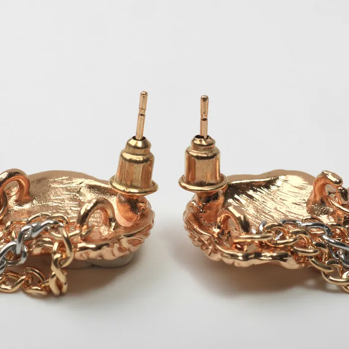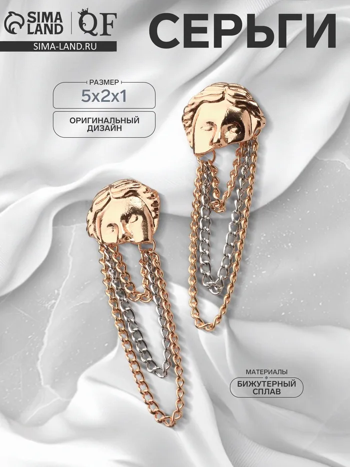 Серьги металл «Лица» цепи, цвет золото с серебром — Характеристики