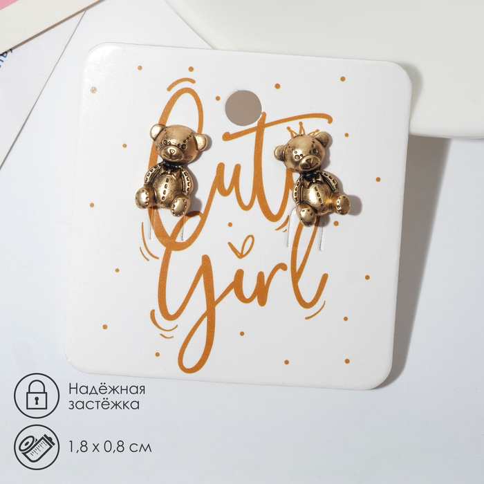 Серьги металл «Мишутка», цвет чернёное золото — Характеристики
