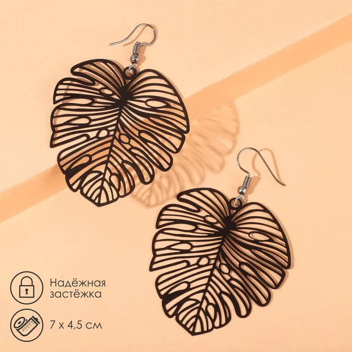 Серьги металл «Монстера» листочек, цвет чёрный — Характеристики