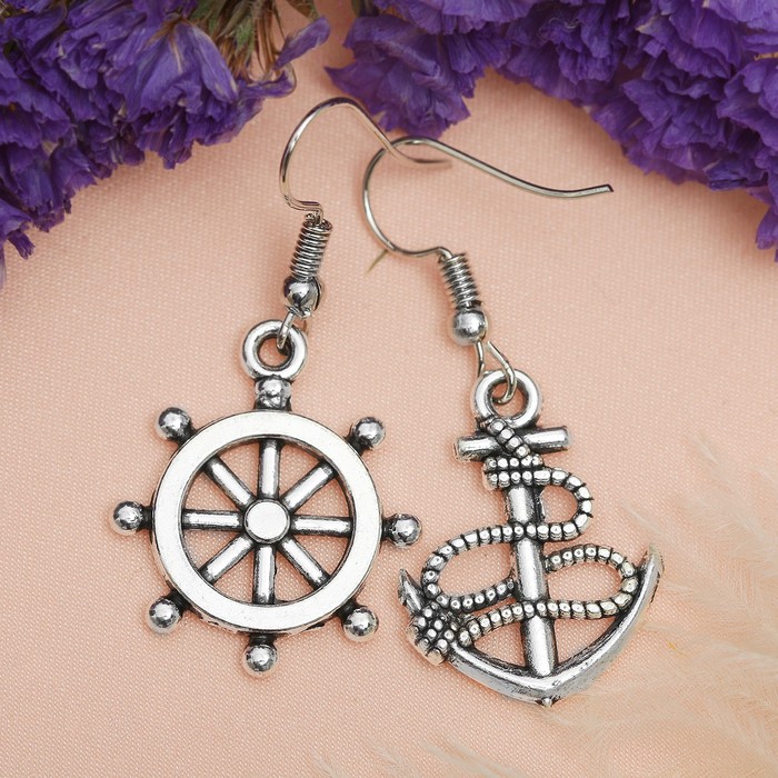 Серьги металл «Морячка», цвет чернёное серебро — Характеристики