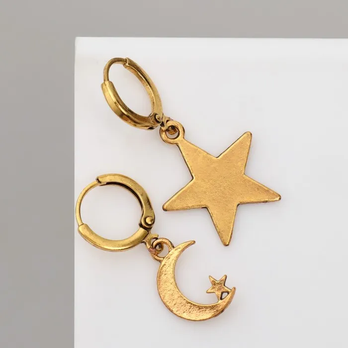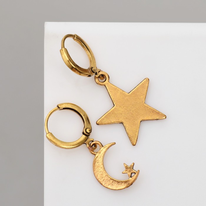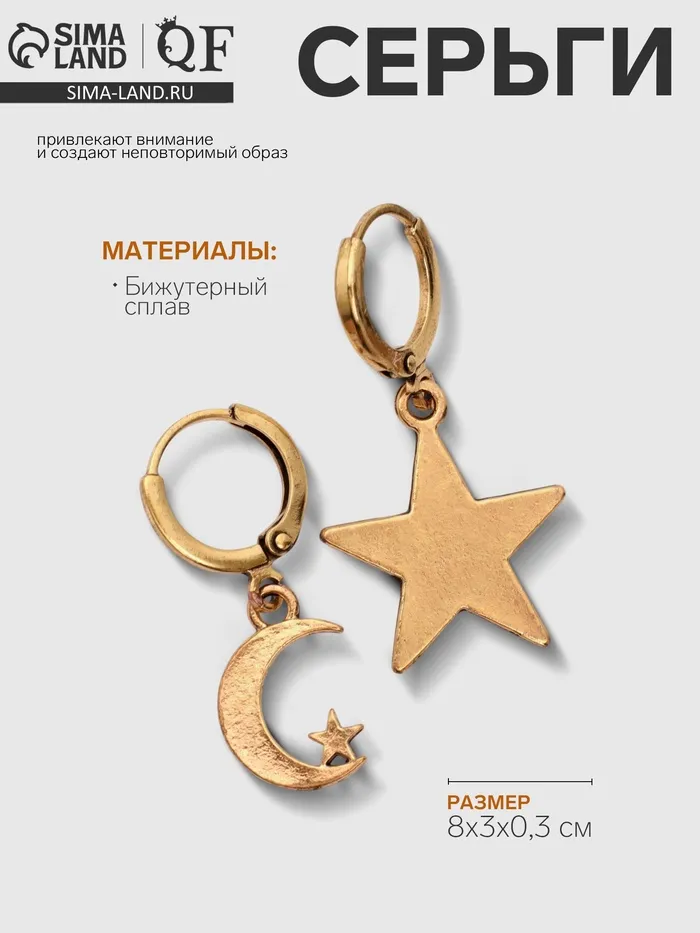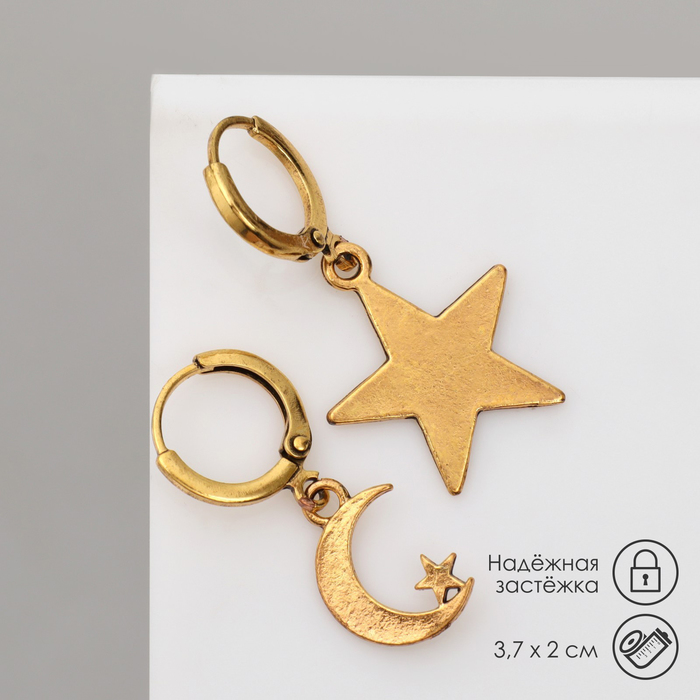 Серьги металл «Ночь» полумесяц и звезды, цвет чернёное золото — Характеристики