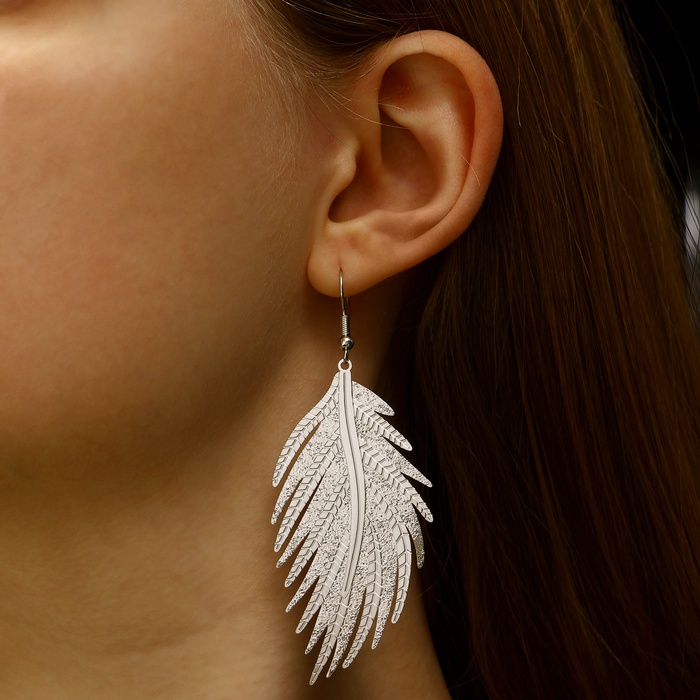 Серьги металл «Папоротник» листочек, цвет серебро — Характеристики