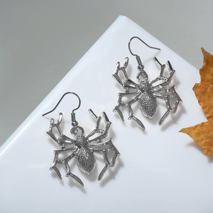 Серьги металл «Паук» в паутине, цвет серебро — Характеристики