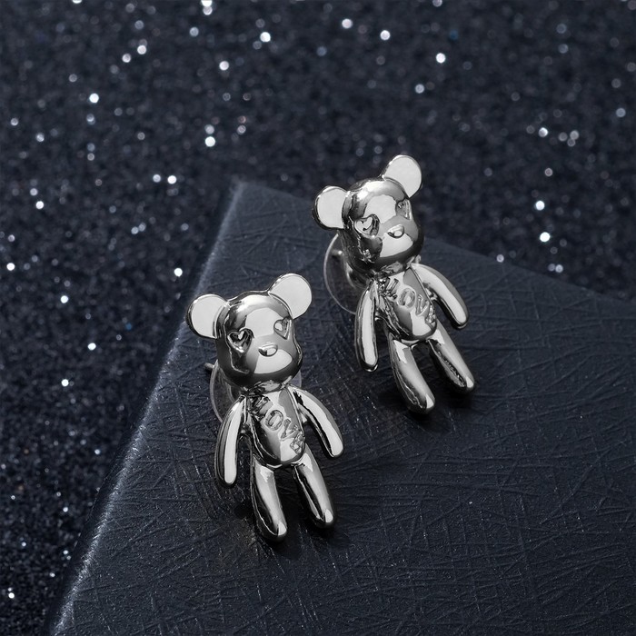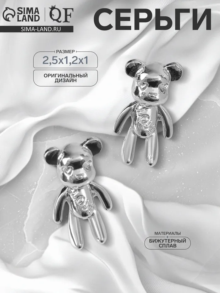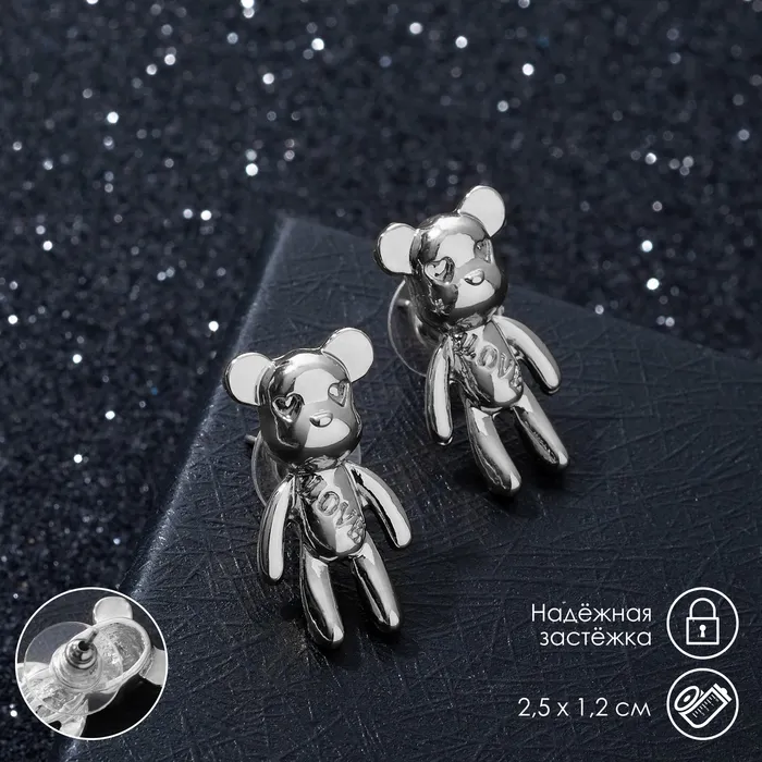 Серьги металл «Плюшевый мишка», цвет серебро — Характеристики