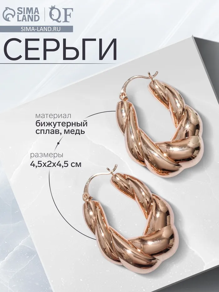 Серьги металл «Рельефные» коса, цвет золото — Характеристики