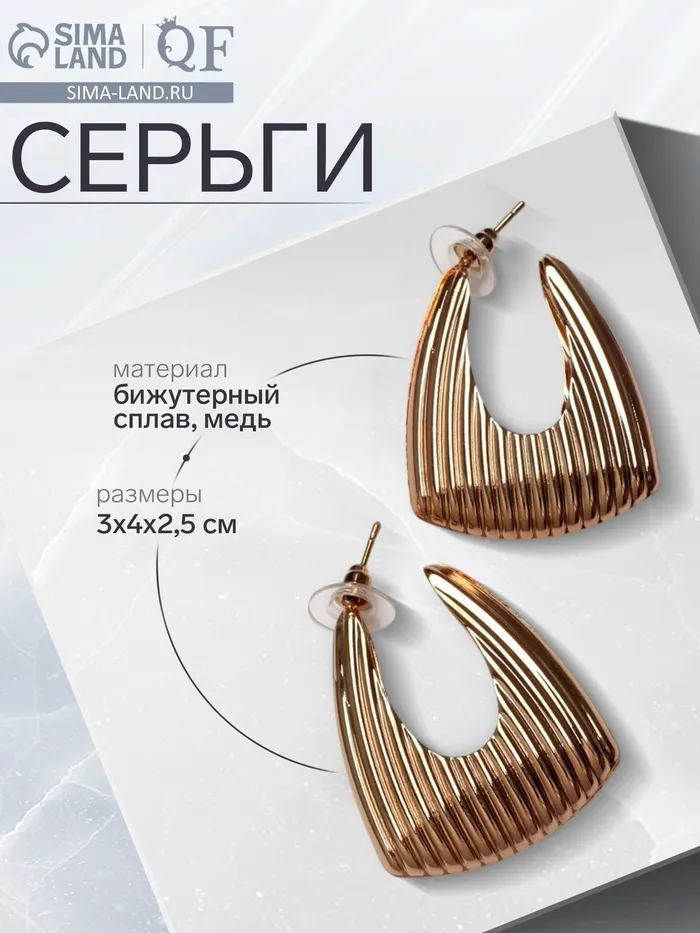 Серьги металл «Рельефные» закруглённые, цвет золото — Характеристики