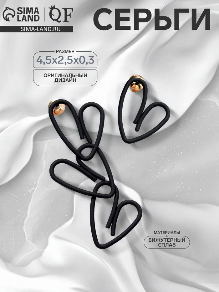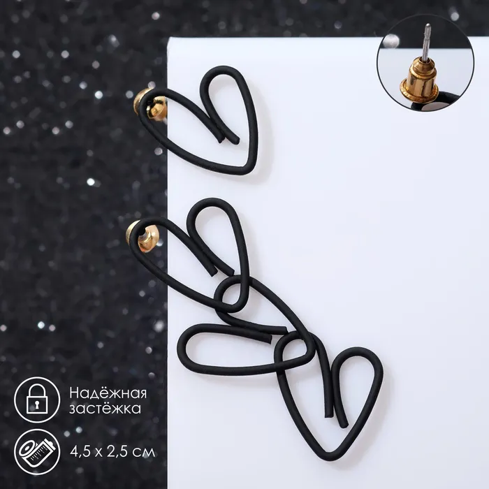 Серьги металл «Сердечки» асимметрия, цвет чёрный — Характеристики