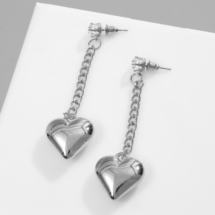 Серьги металл «Сердца» на цепочке, цвет белый в серебре — Характеристики