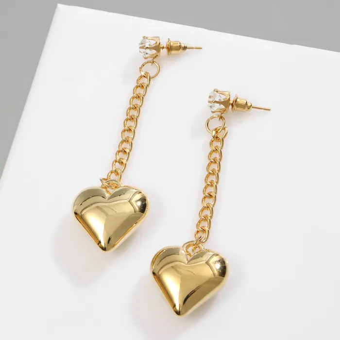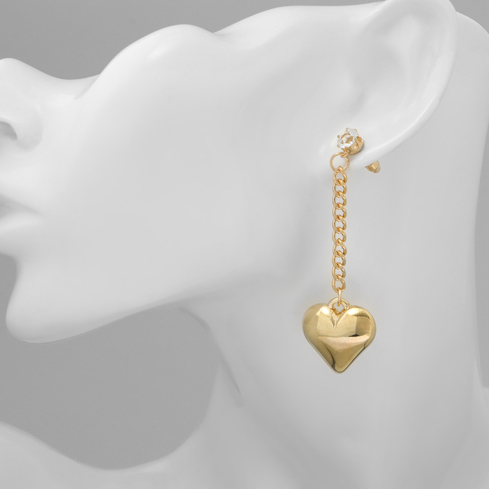 Серьги металл «Сердца» на цепочке, цвет белый в золоте — Характеристики