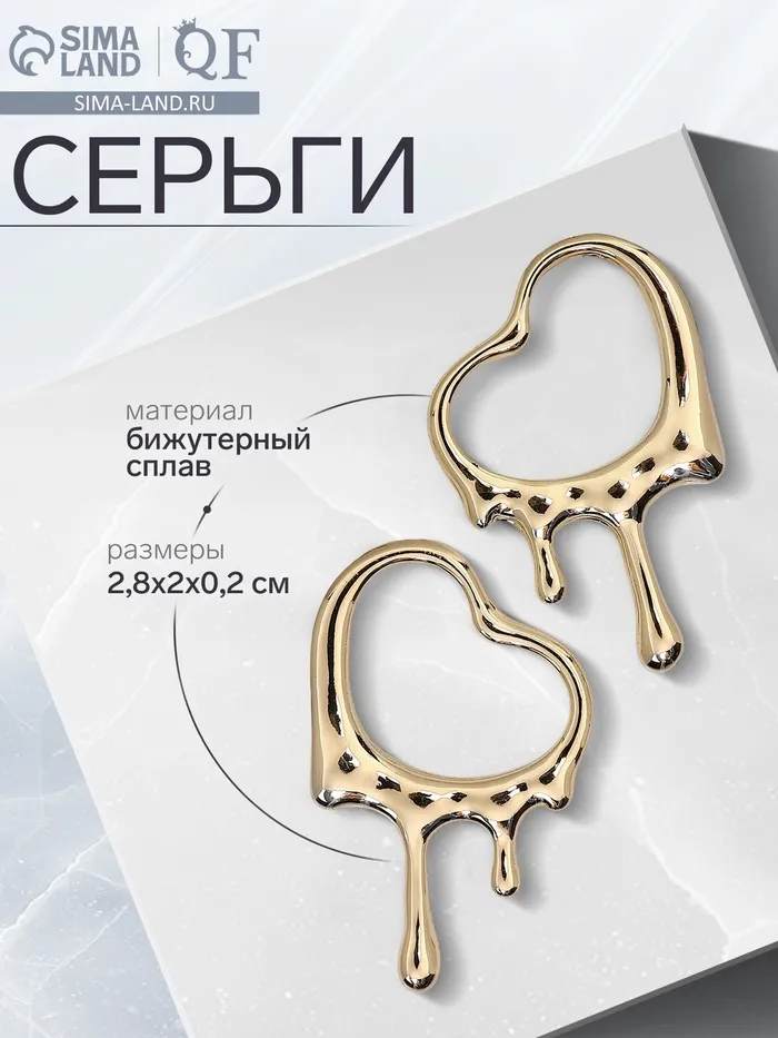 Серьги металл «Сердца» таяние, цвет золото — Характеристики