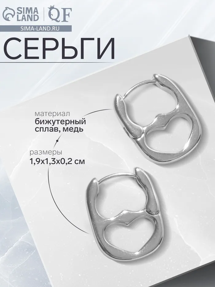 Погрузитесь в мир романтики и стиля с серьгами в форме сердца, выполненными из качественного металла и окрашенными в изысканный серебристый цвет. Эти серьги станут идеальным дополнением для женщин, которые ценят уникальные аксессуары и хотят выразить свои чувства через бижутерию. Длина 1,9 см делает их универсальными для любого повода — от повседневного ношения до праздничных мероприятий.