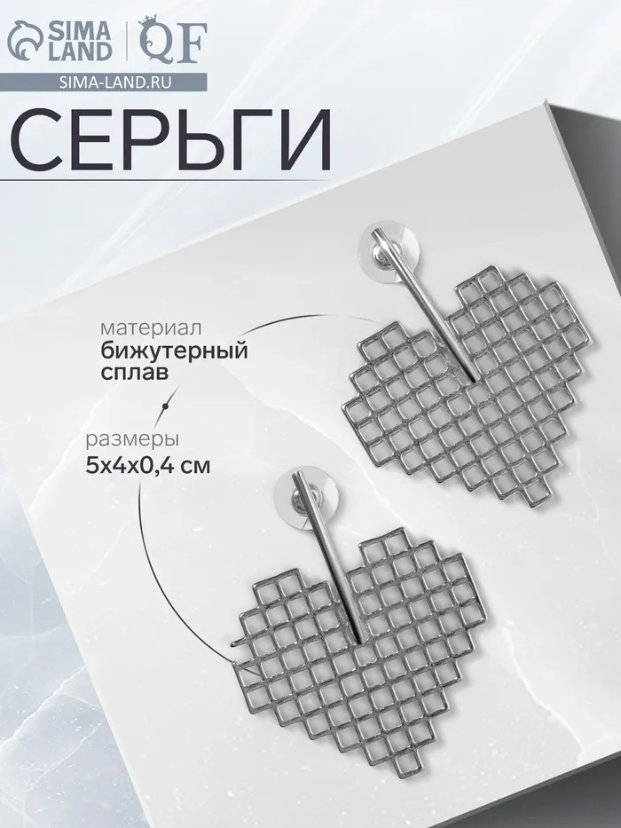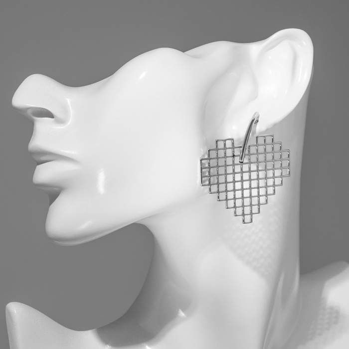 Серьги металл «Сердце» техно, цвет серебро — Характеристики