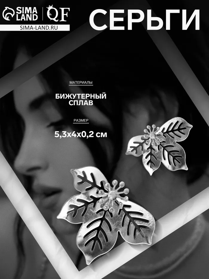 Серьги металл «Стиль» лист, клён, цвет серебро — Характеристики