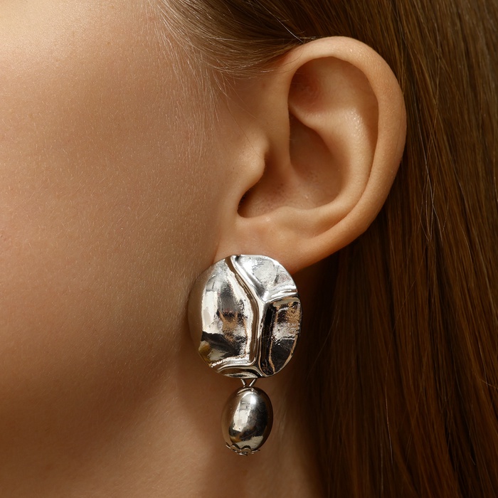Серьги металл «Стиль» панцирь, цвет серебро — Характеристики