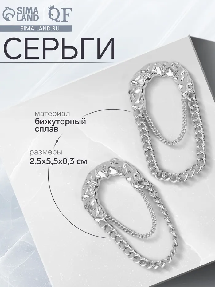 Серьги металл «Стиль» цепь, булавка, цвет серебро — Характеристики