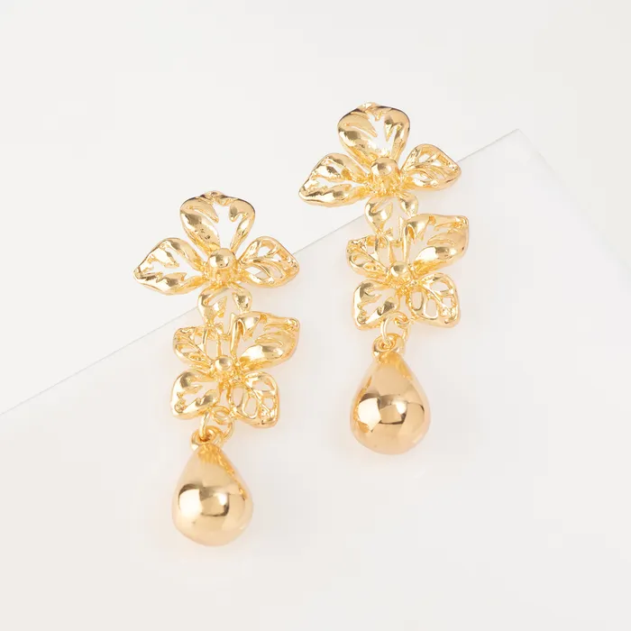 Серьги металл «Стиль» цветок с каплей, цвет золото — Характеристики