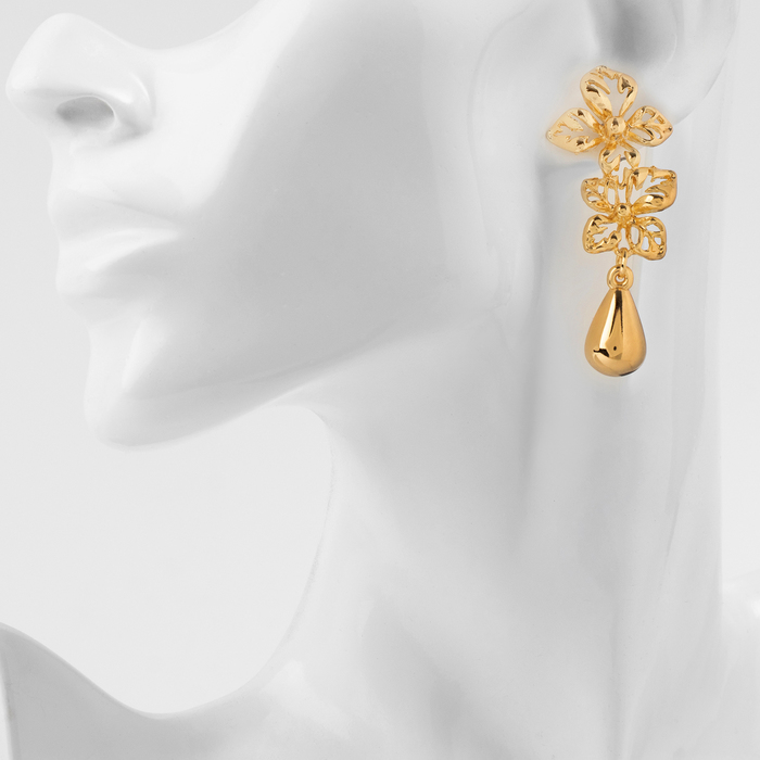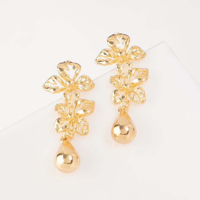 Серьги металл «Стиль» цветок с каплей, цвет золото — Характеристики
