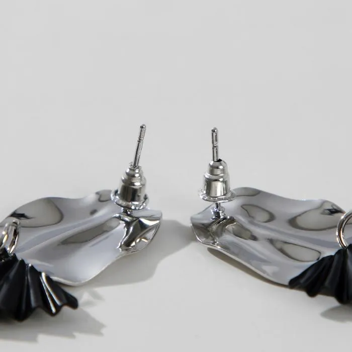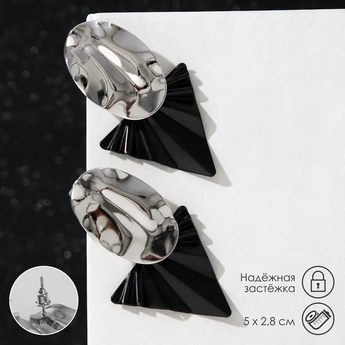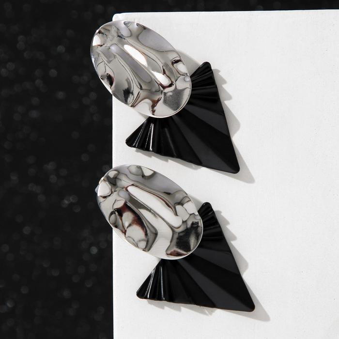 Серьги металл «Тренд» овал и треугольник, цвет чёрный в глянцевом серебре — Характеристики